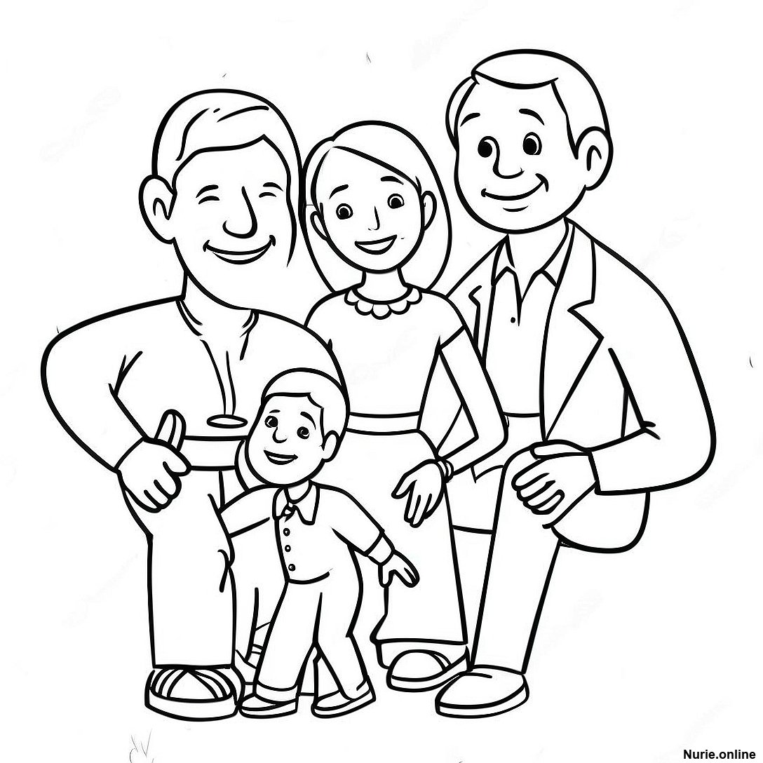 愛する家族が一緒にいる塗り絵の印刷可能なPDFをダウンロードする
