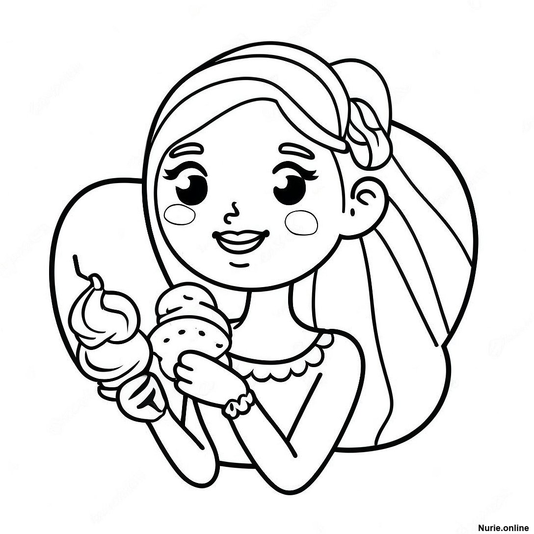 アイスクリームを持った魅力的なタンブラーガール 塗り絵の印刷可能なPDFをダウンロードする