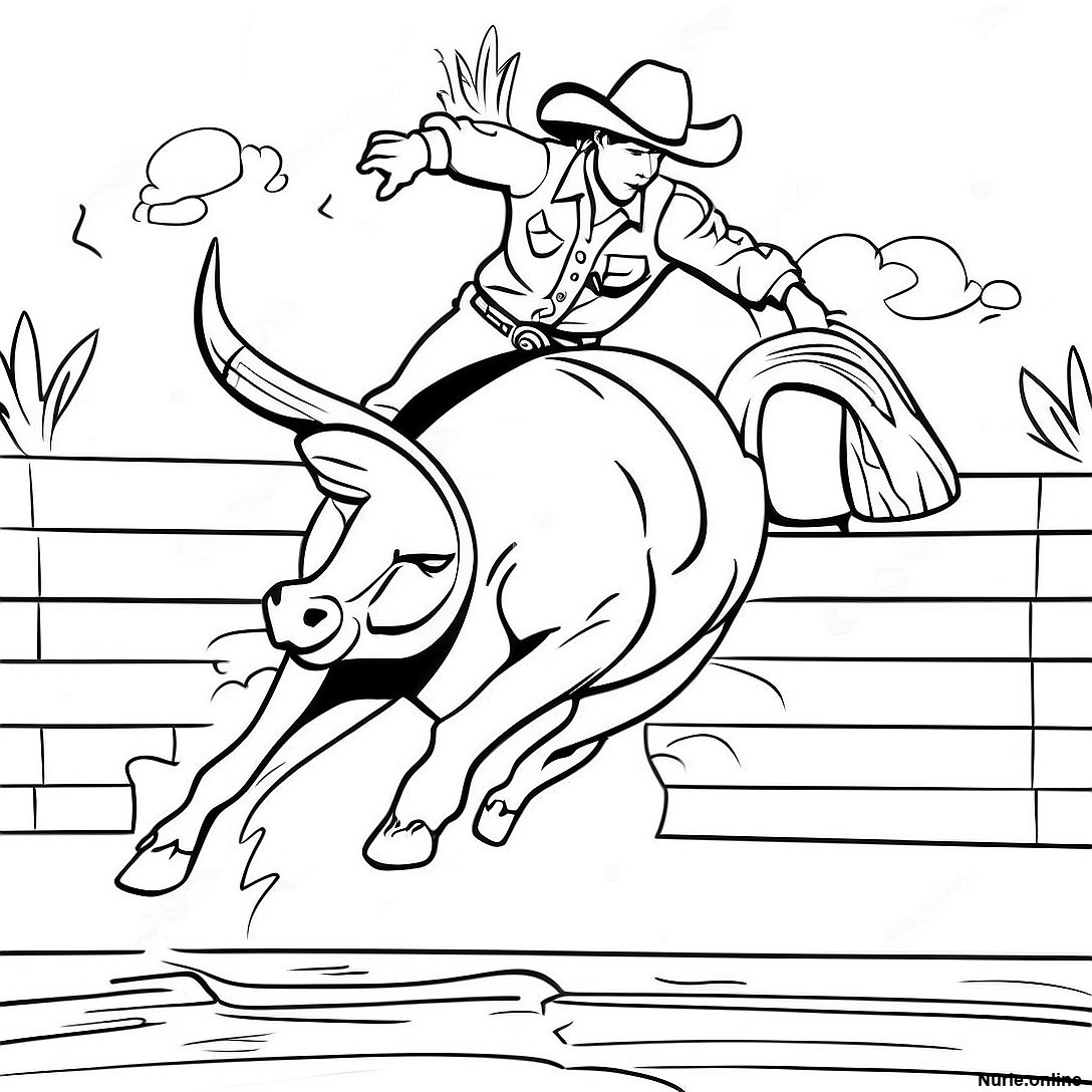 アクション満載のブルライダーの塗り絵の印刷可能なPDFをダウンロードする