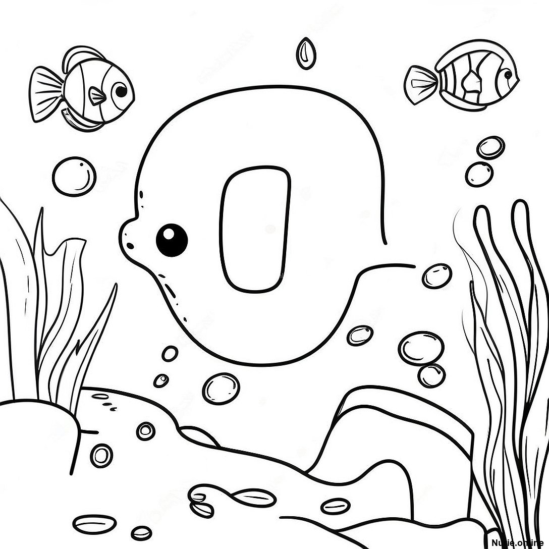 アルファベットuのある水中シーンの塗り絵の印刷可能なPDFをダウンロードする