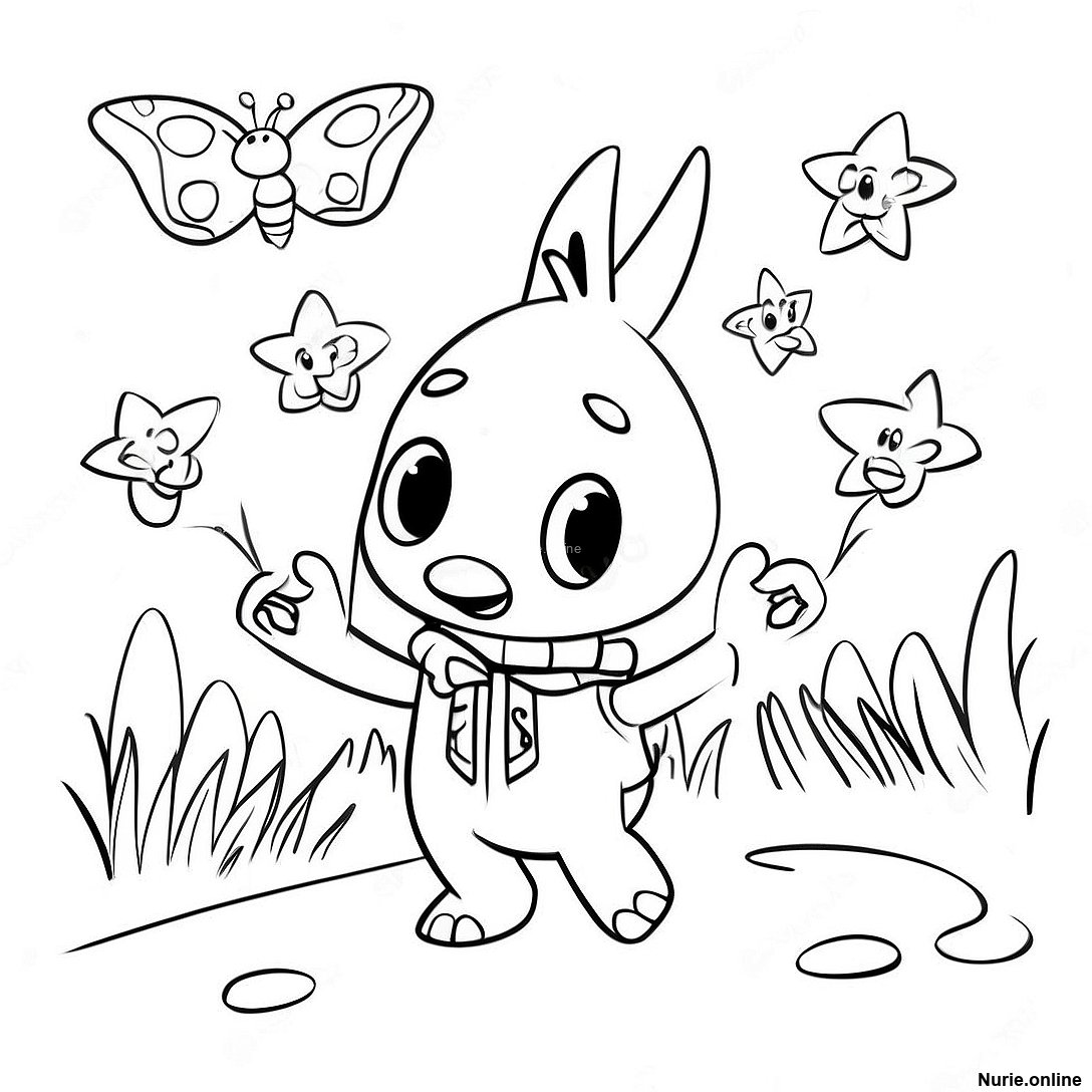 公園で遊ぶココメロンのキャラクターの塗り絵