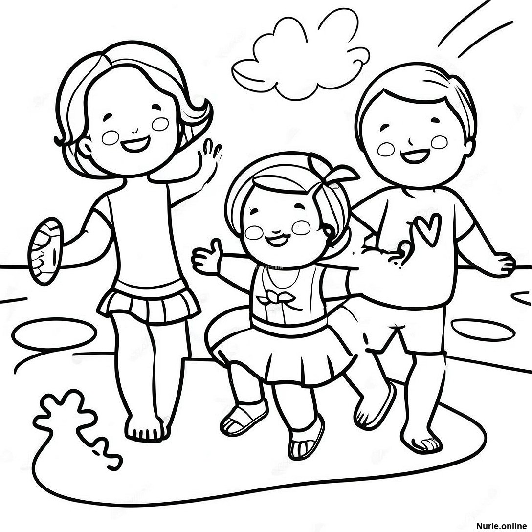 ビーチで楽しむ幼児の塗り絵の印刷可能なPDFをダウンロードする
