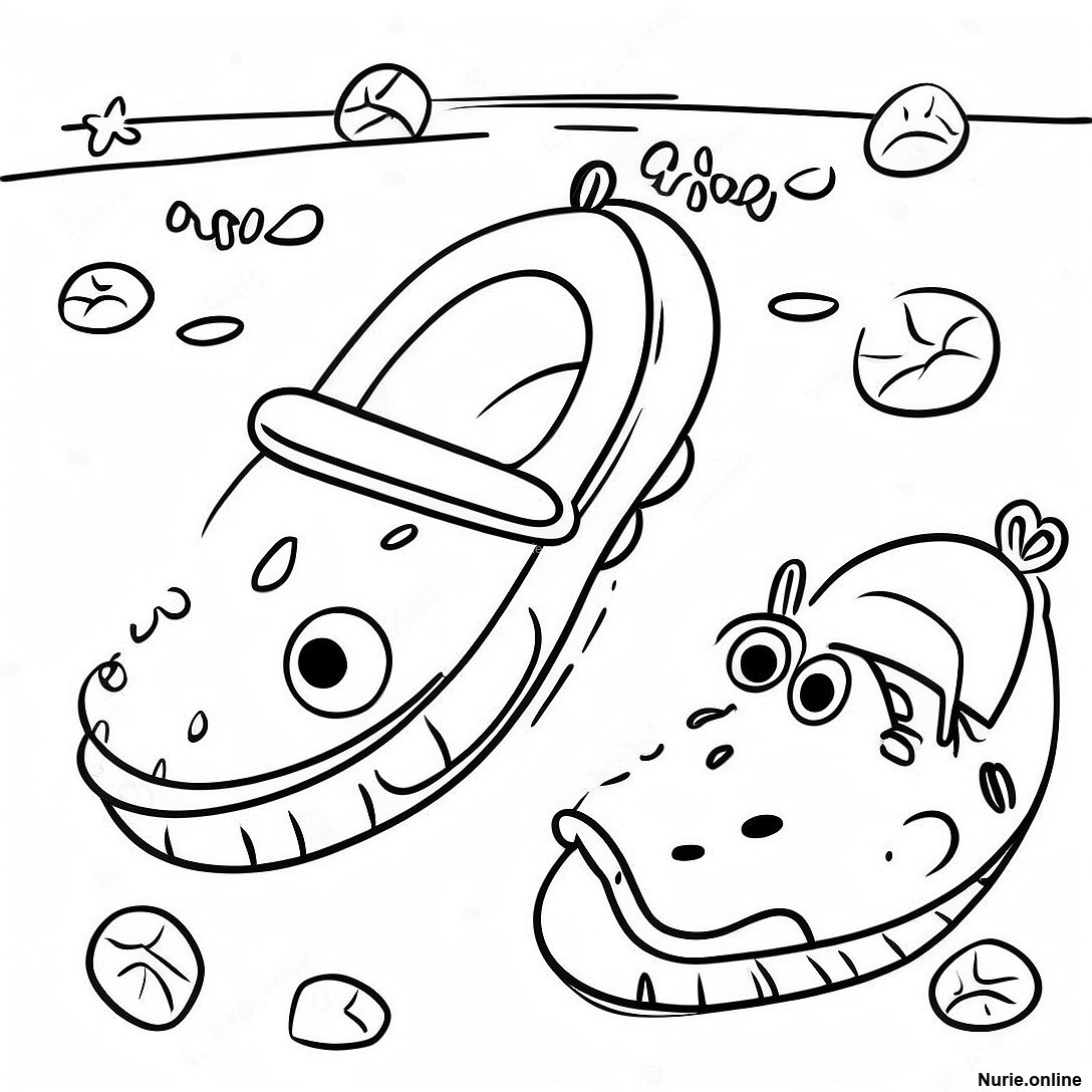 ビーチでのカラフルなクロックスの塗り絵の印刷可能なPDFをダウンロードする