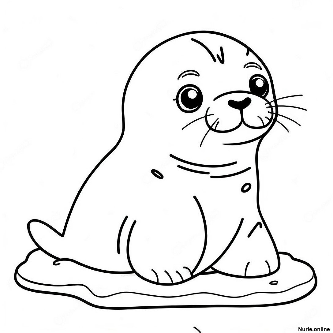 氷の上にいる愛らしいアザラシの子供の塗り絵