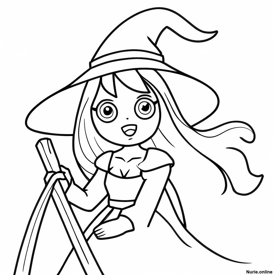 不気味なアニメの魔女 塗り絵の印刷可能なPDFをダウンロードする