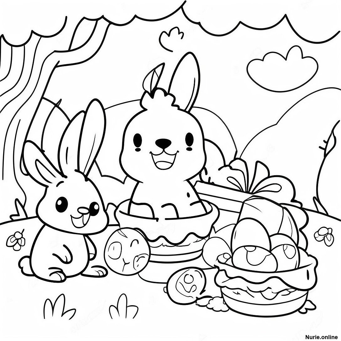 ブルーイと友達のイースターピクニックの塗り絵の印刷可能なPDFをダウンロードする