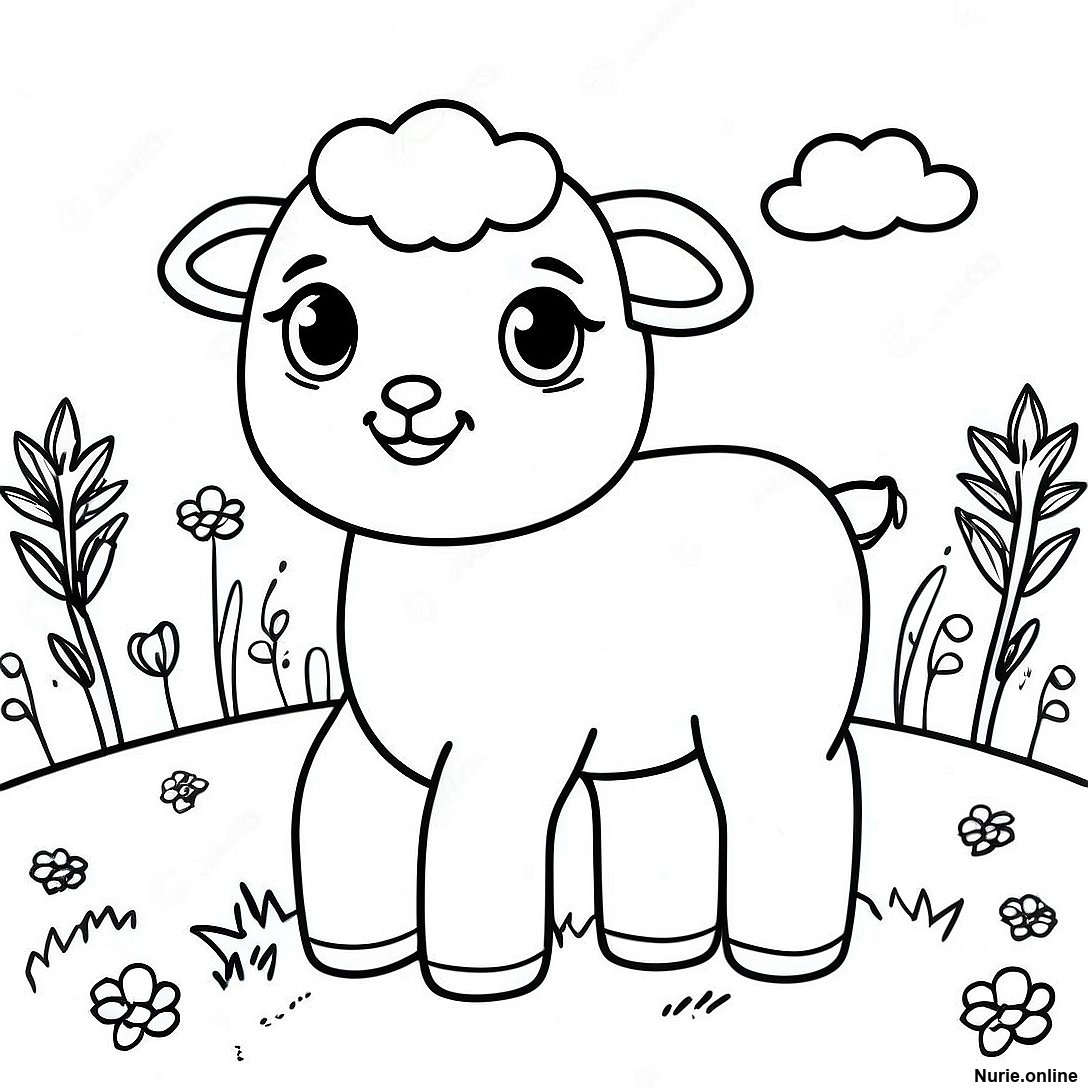 草原の愛らしい子羊の塗り絵の印刷可能なPDFをダウンロードする