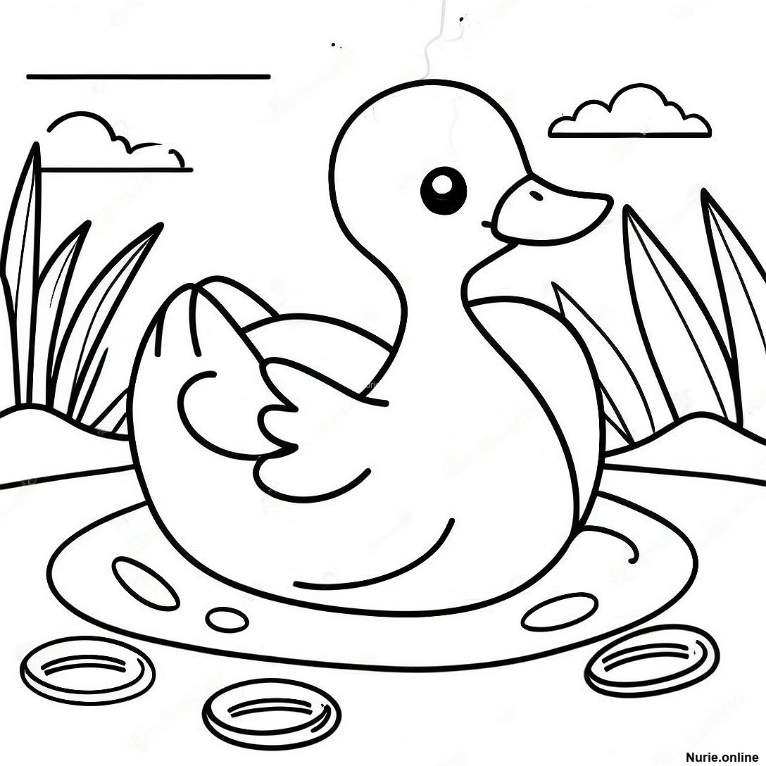 池の中のリアルな紙のアヒルの塗り絵の印刷可能なPDFをダウンロードする