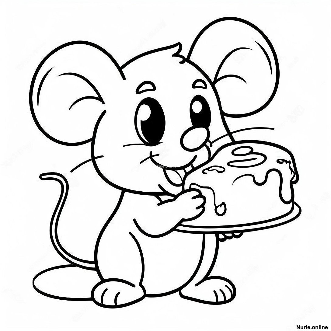 チーズを持ったハッピーマウスの塗り絵の印刷可能なPDFをダウンロードする
