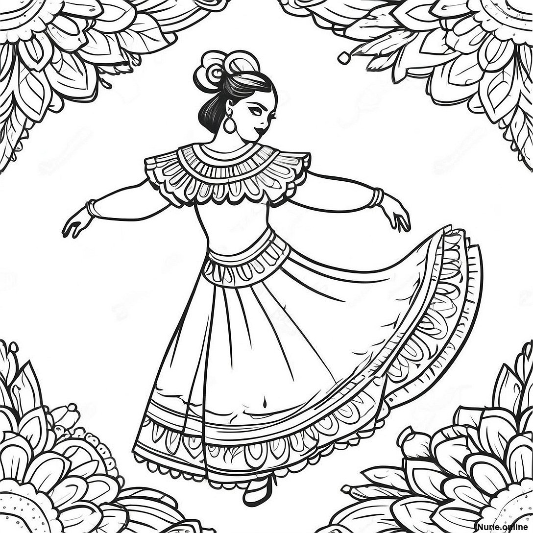 伝統的なメキシコのダンサー 塗り絵の印刷可能なPDFをダウンロードする