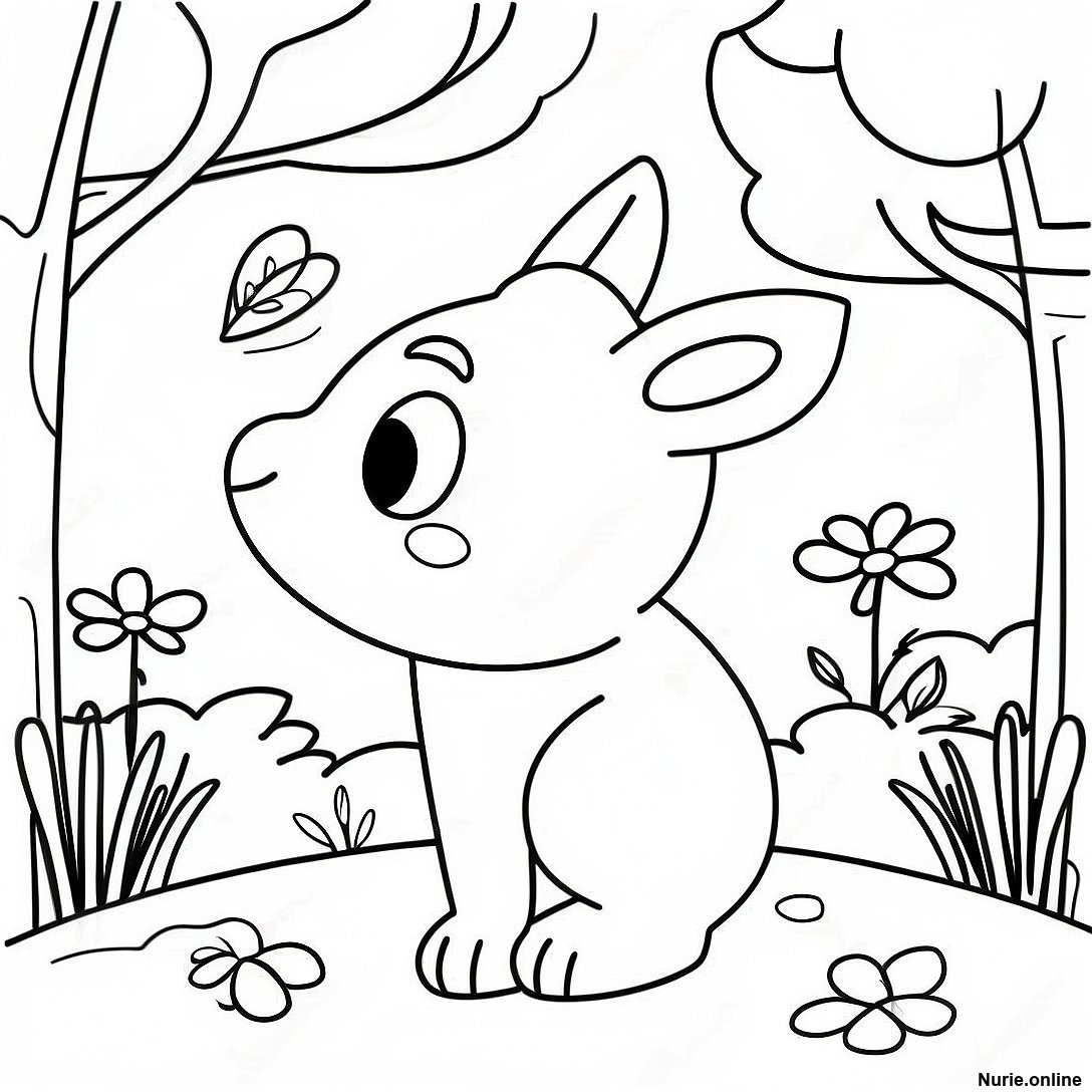 かわいいアニメ風の花 塗り絵