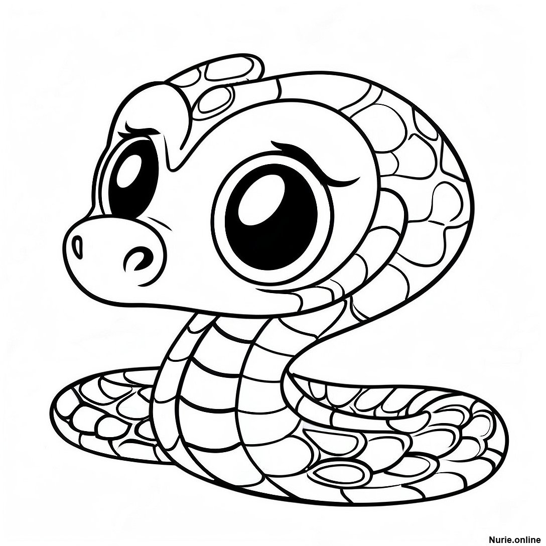 大きな目のカートゥーンパイソンの塗り絵の印刷可能なPDFをダウンロードする