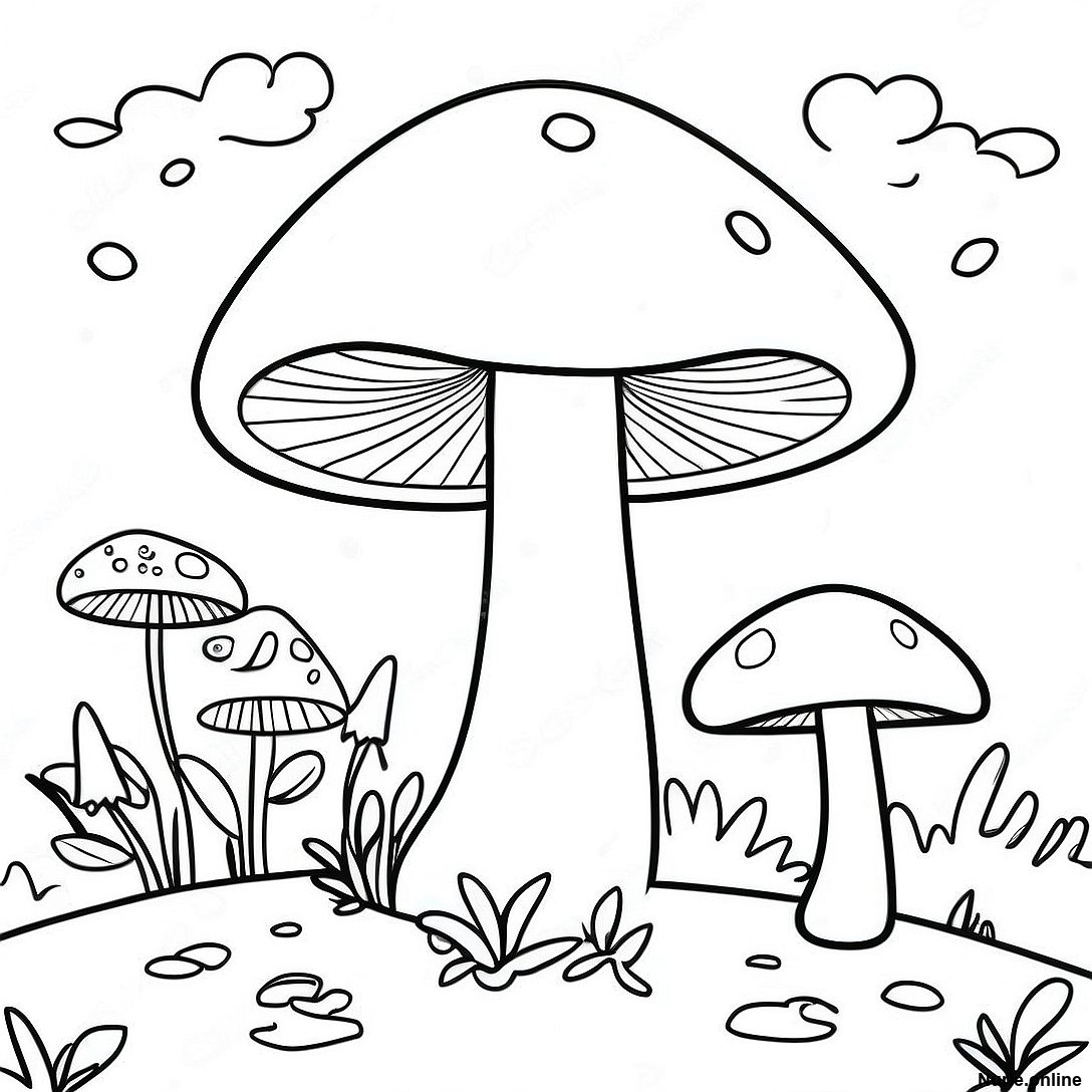 風変わりなキノコの森の塗り絵の印刷可能なPDFをダウンロードする