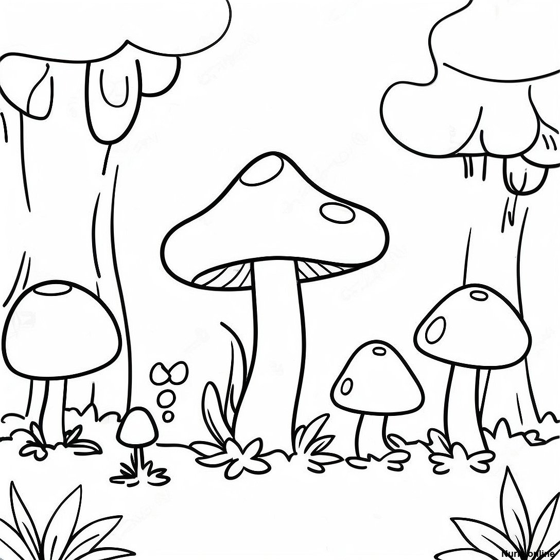 風変わりなキノコの森の塗り絵の印刷可能なPDFをダウンロードする
