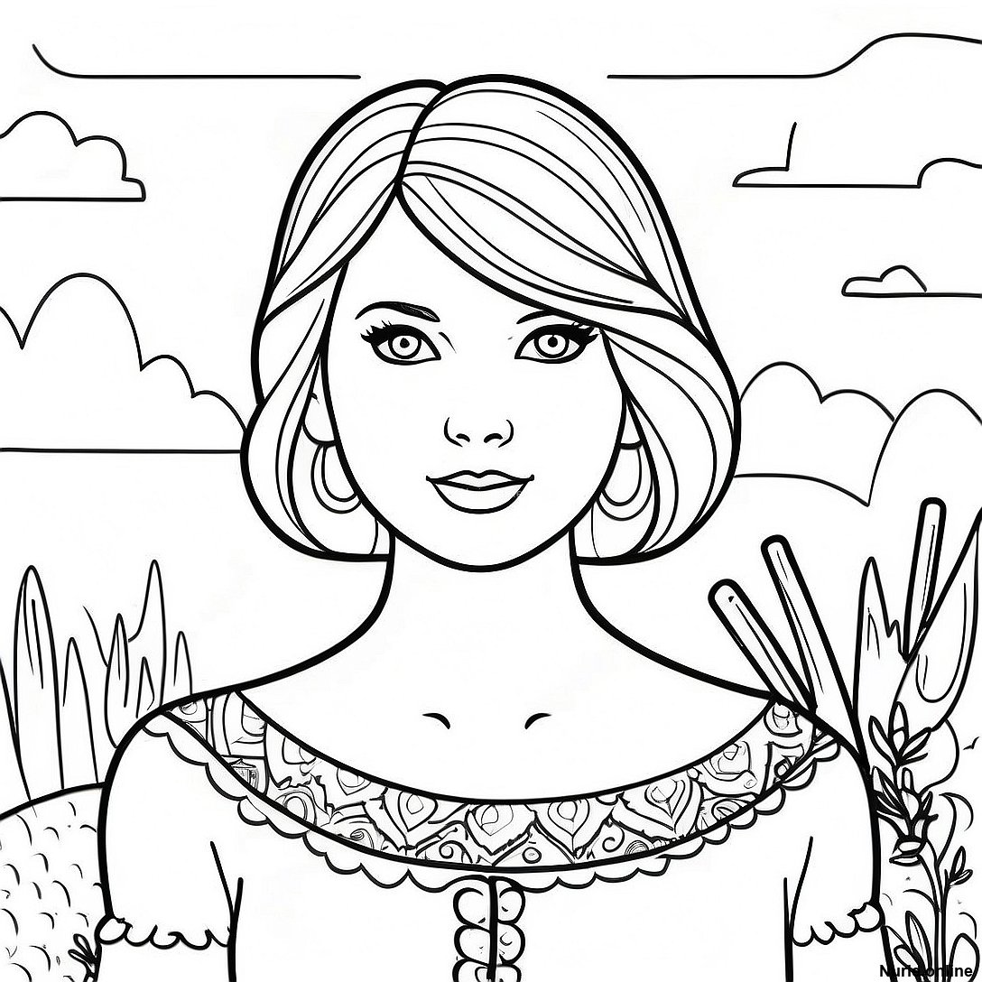 テイラー・スウィフトがキラキラしたドレスを着ている塗り絵