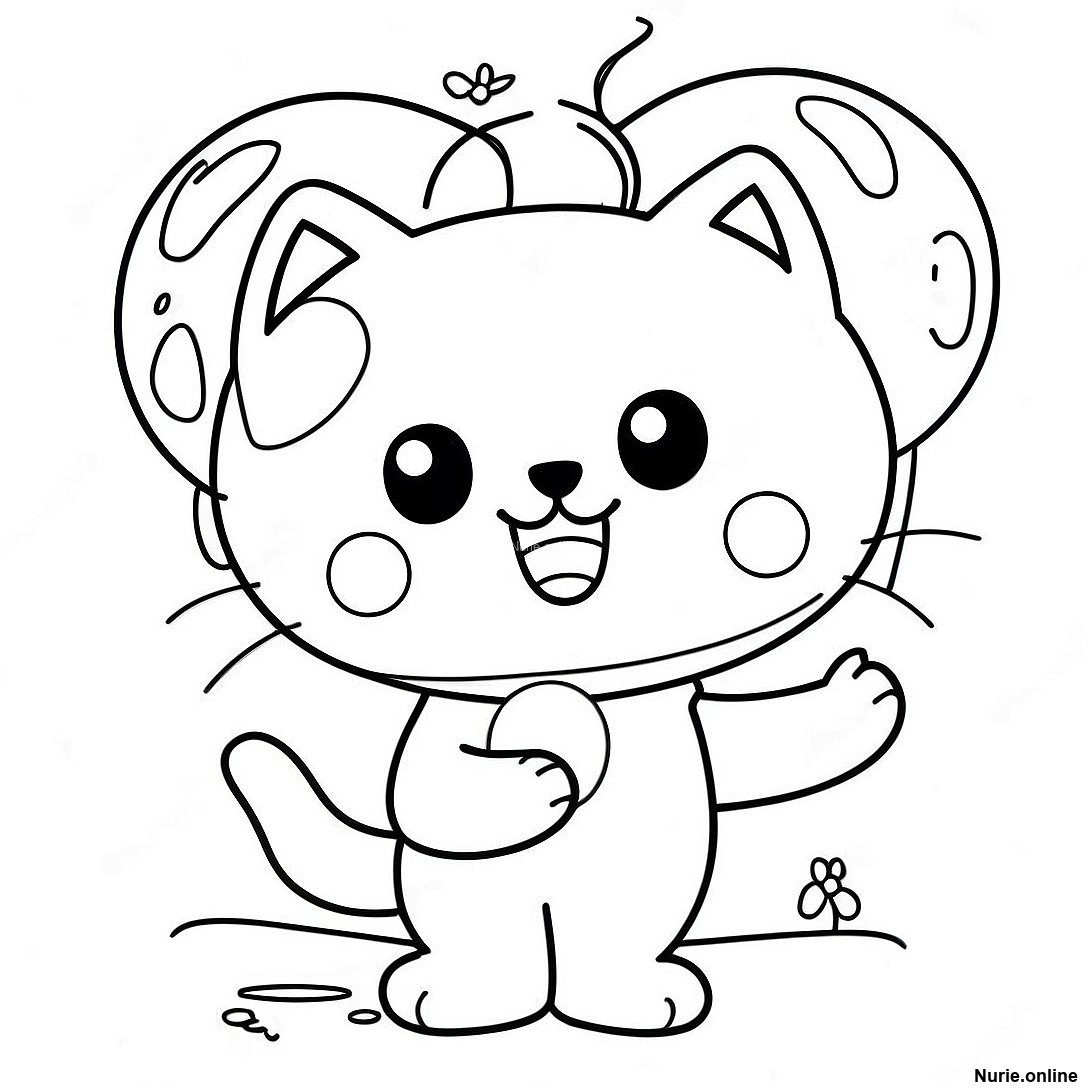 風船を持ったチョコキャットの塗り絵の印刷可能なPDFをダウンロードする