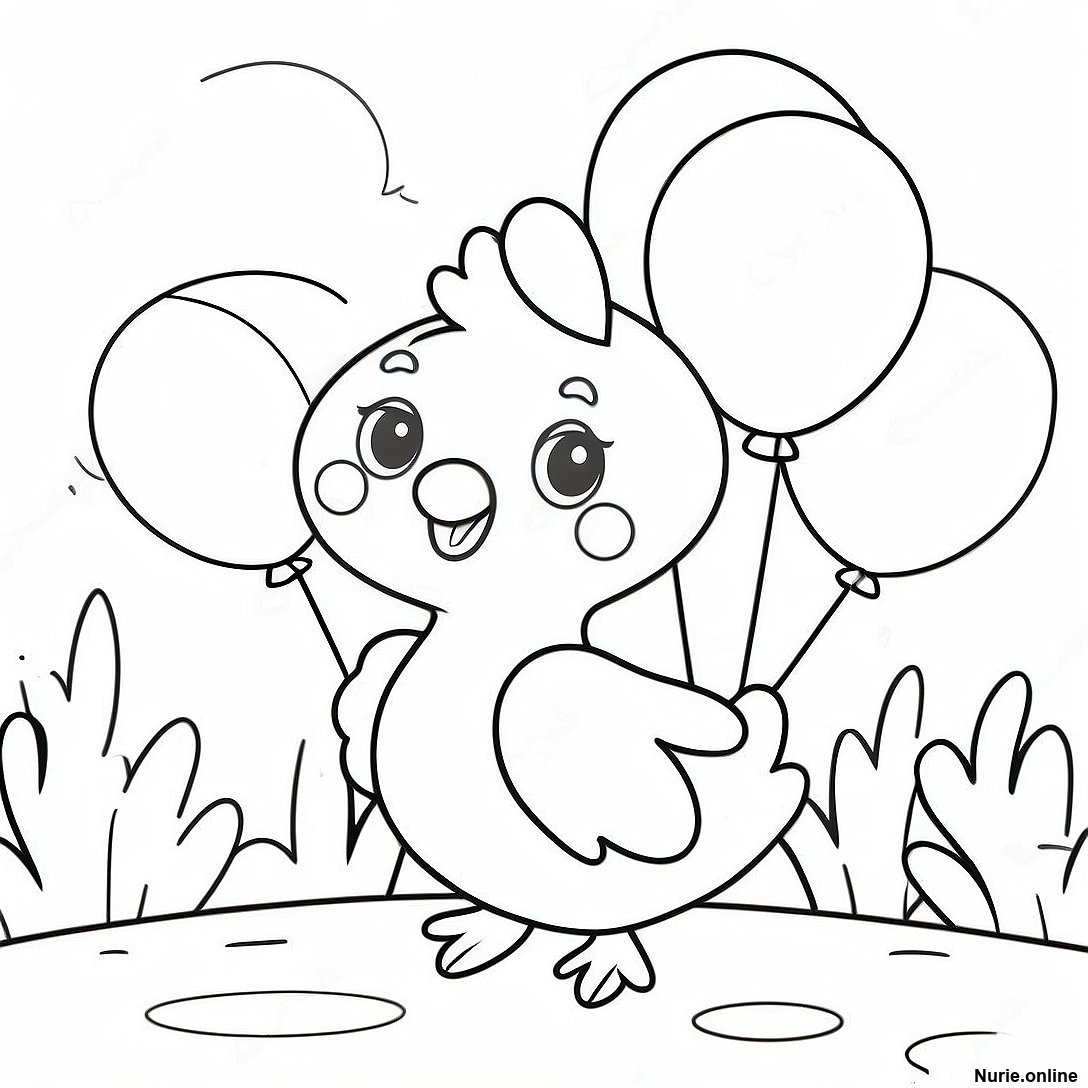 風船を持ったかわいいチカの塗り絵の印刷可能なPDFをダウンロードする