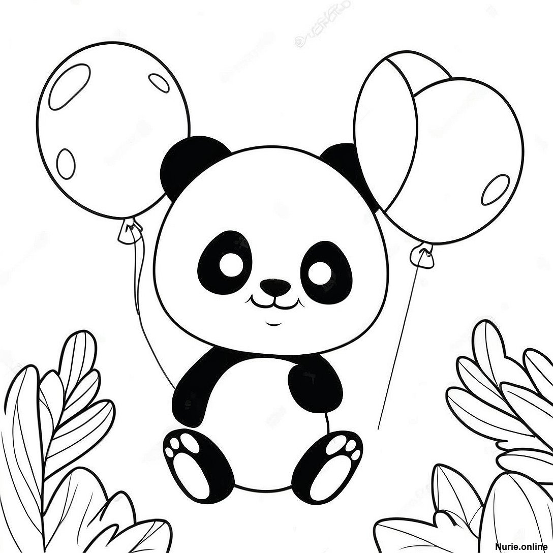風船を持ったかわいいミミ パンダ 塗り絵の印刷可能なPDFをダウンロードする