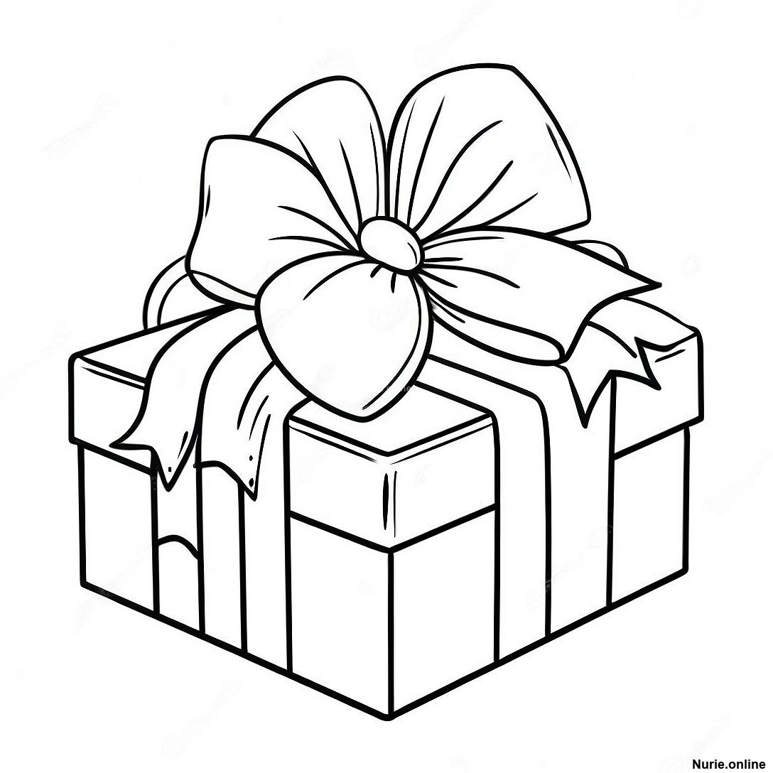 ギフトボックスの上のエレガントな弓の塗り絵の印刷可能なPDFをダウンロードする