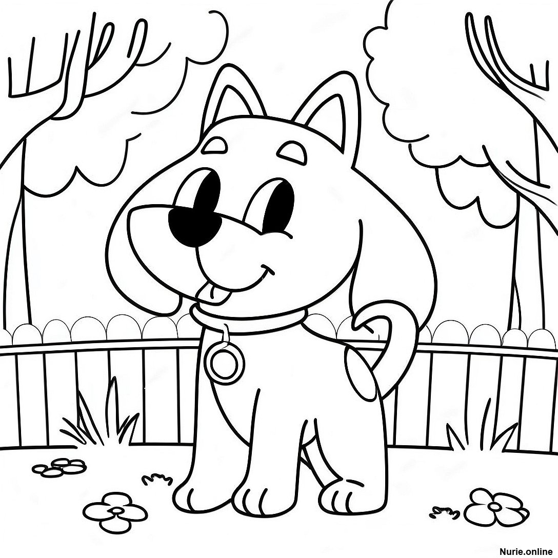 公園で冒険するキャットドッグの塗り絵の印刷可能なPDFをダウンロードする
