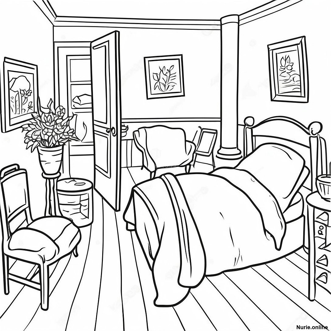ゴッホのアルルの寝室 塗り絵の印刷可能なPDFをダウンロードする