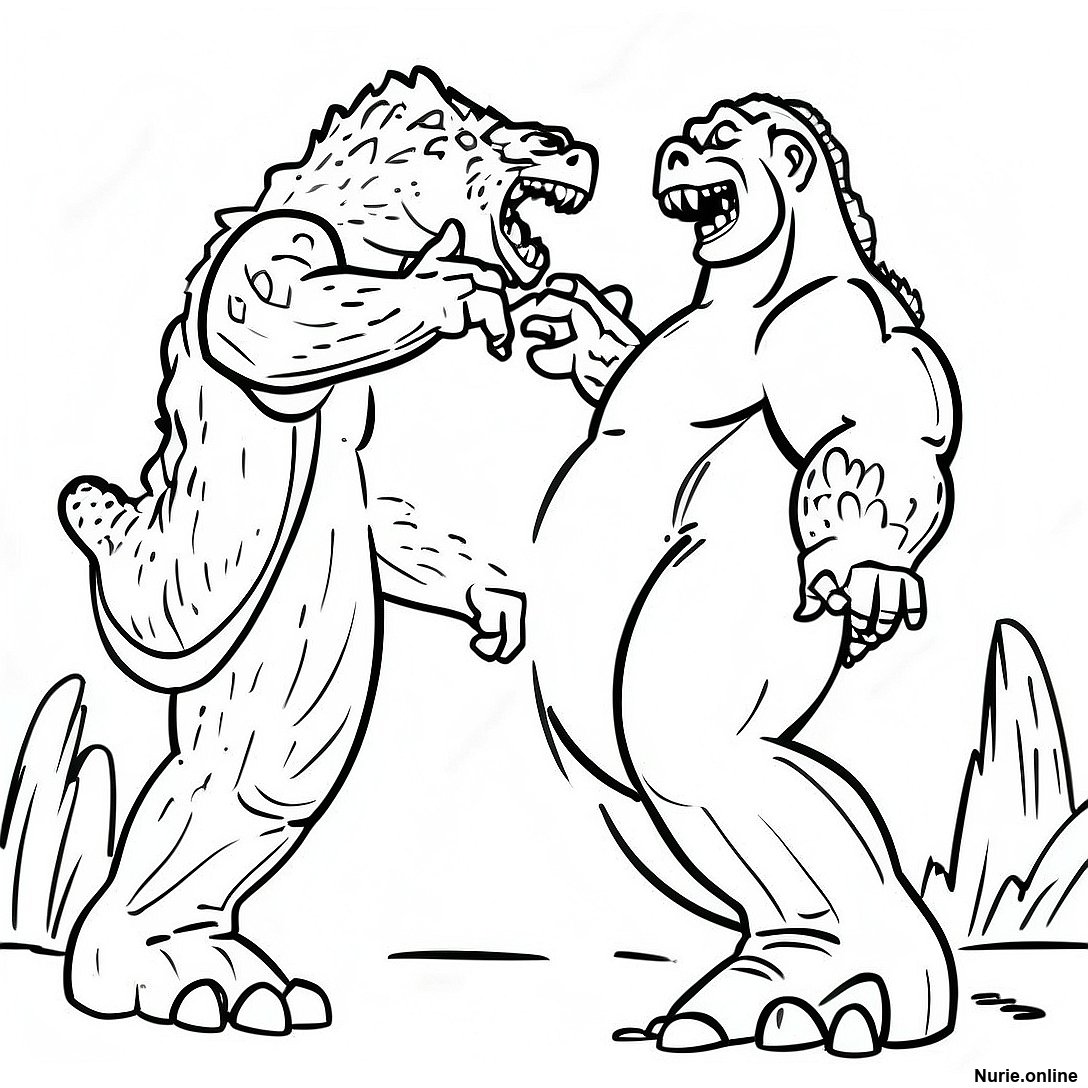 ゴジラがキングコングと戦う塗り絵の印刷可能なPDFをダウンロードする