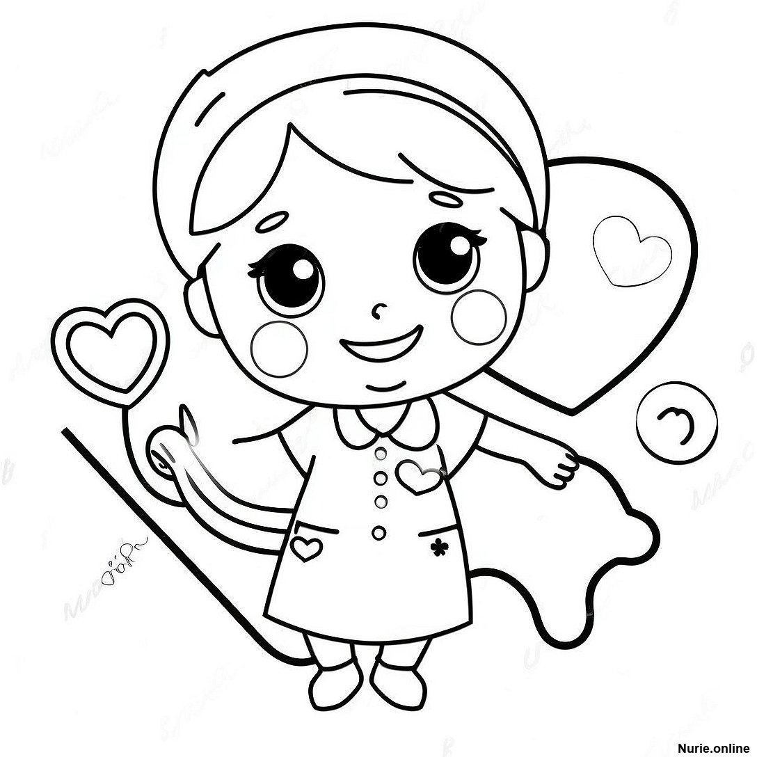 ハートを持ったかわいい看護師の塗り絵の印刷可能なPDFをダウンロードする