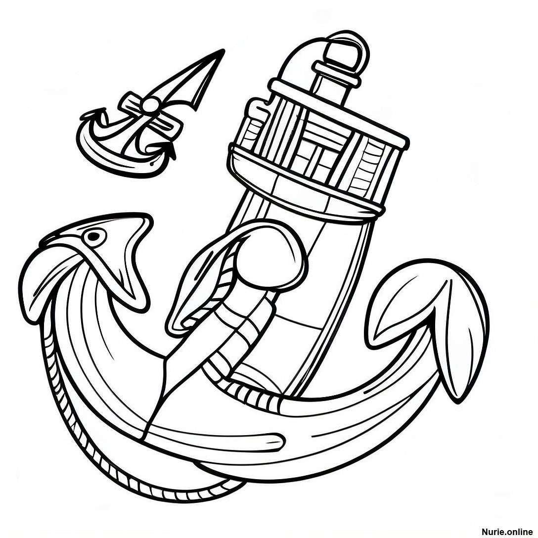 海のテーマのアンカーの塗り絵の印刷可能なPDFをダウンロードする