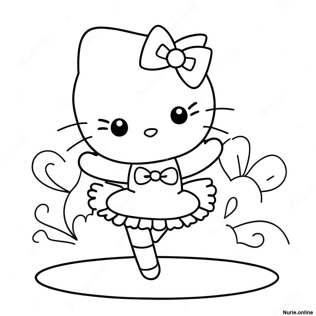 ハローキティバレリーナのアウトライン塗り絵の印刷可能なPDFをダウンロードする