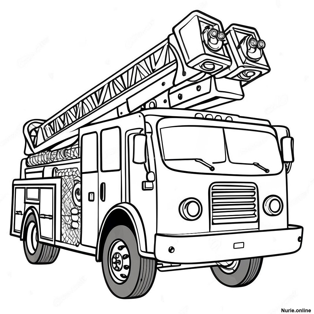 はしごを伸ばす消防車 塗り絵の印刷可能なPDFをダウンロードする