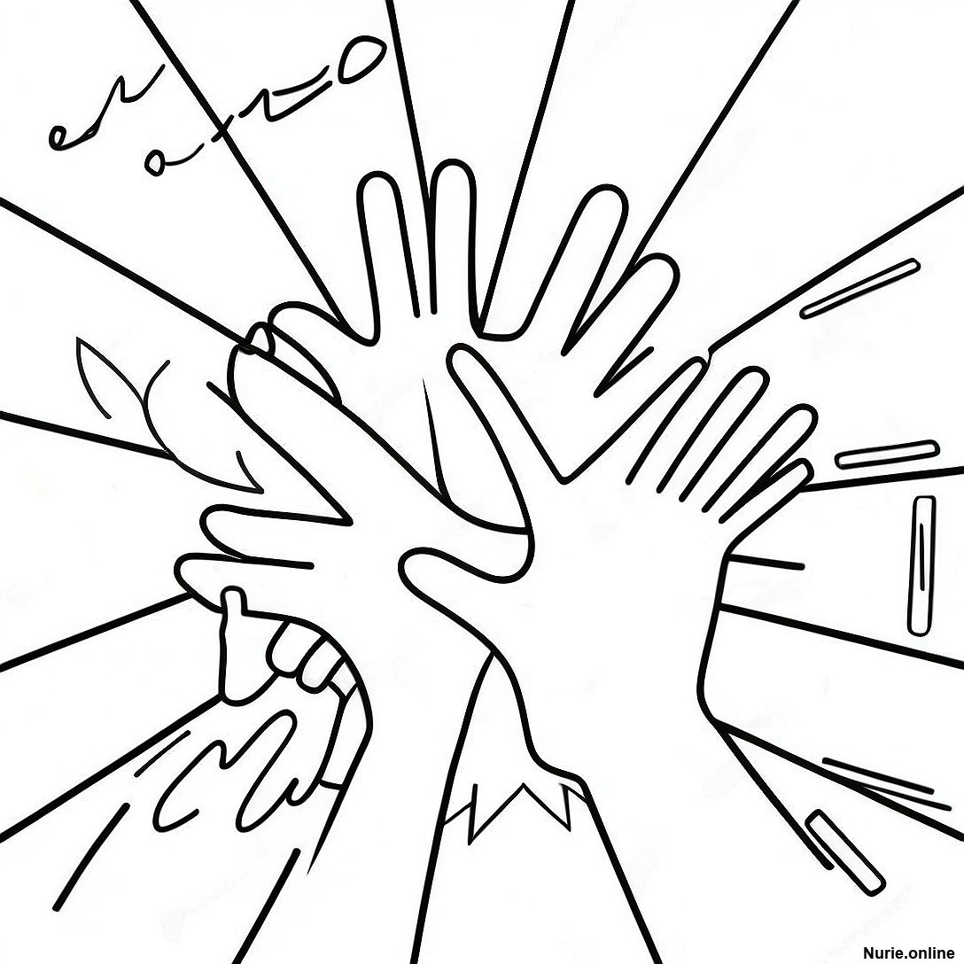 ハッピーな手の塗り絵の印刷可能なPDFをダウンロードする