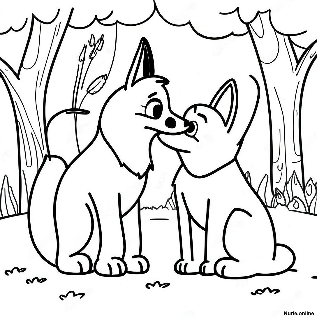 狐と猟犬の塗り絵の印刷可能なPDFをダウンロードする
