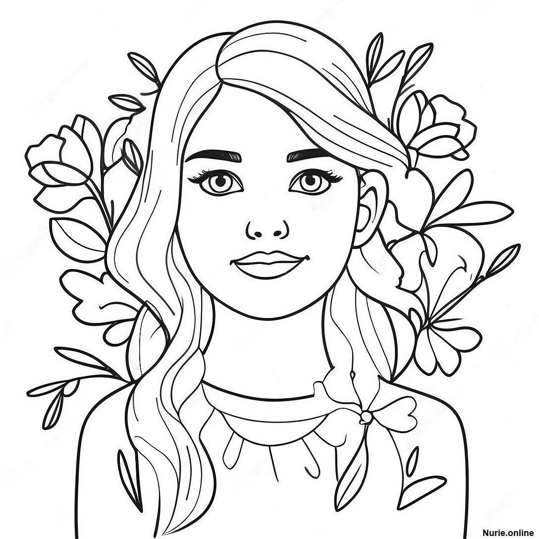 花を持ったトレンディなタンブラーガール 塗り絵の印刷可能なPDFをダウンロードする