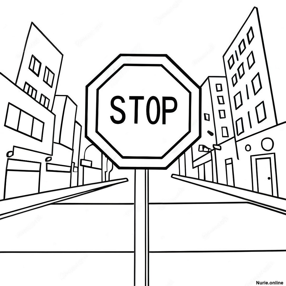 街の中の漫画風ストップサインの塗り絵