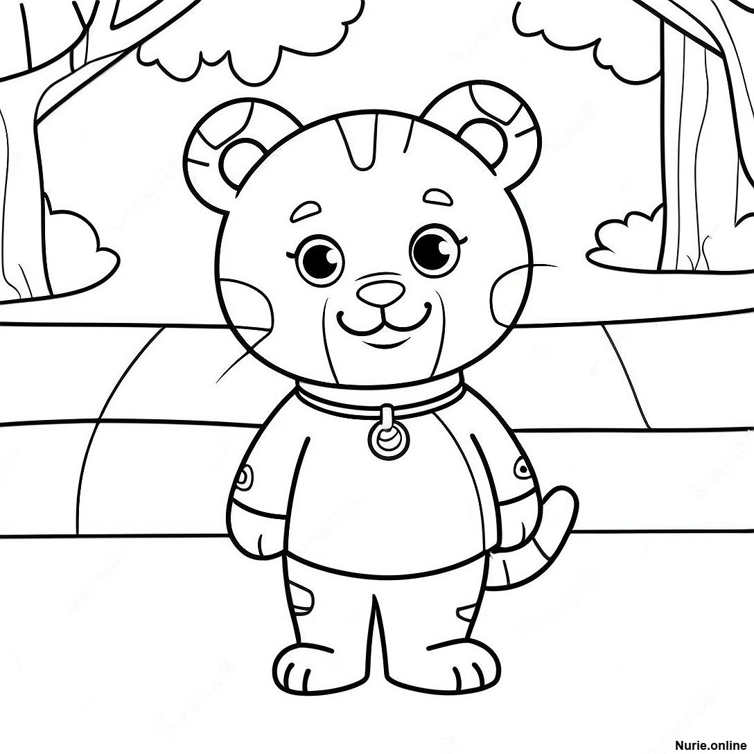 近所にいるダニエルタイガーの塗り絵の印刷可能なPDFをダウンロードする
