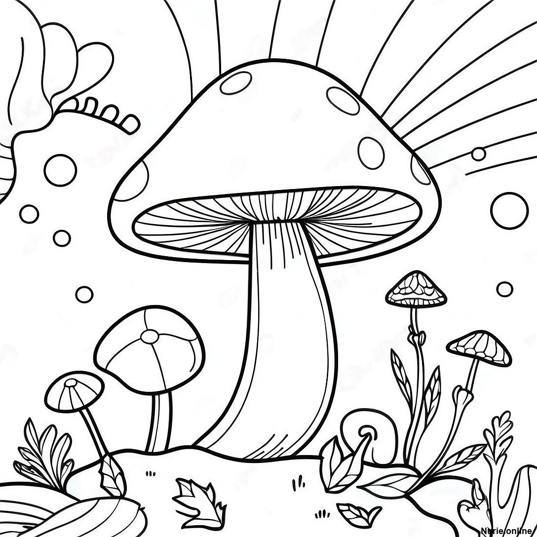 カラフルなサイケデリックキノコの塗り絵の印刷可能なPDFをダウンロードする