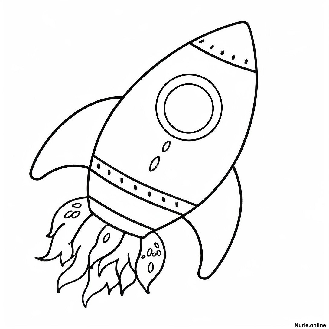 カラフルな炎を持つロケットの塗り絵の印刷可能なPDFをダウンロードする