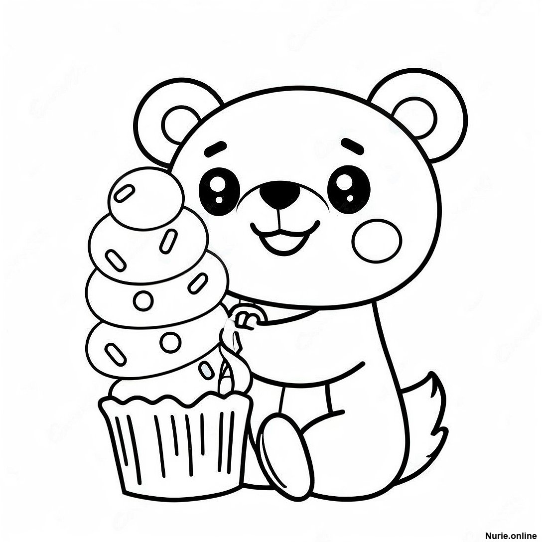 カップケーキを持つ幸せなリラックマの塗り絵の印刷可能なPDFをダウンロードする