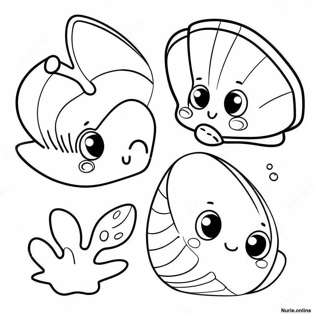 かわいいアニメ風の貝殻 塗り絵の印刷可能なPDFをダウンロードする