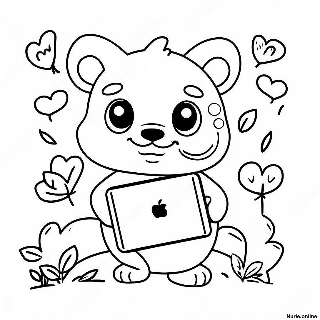 かわいい動物のステッカーがあるipadの塗り絵の印刷可能なPDFをダウンロードする