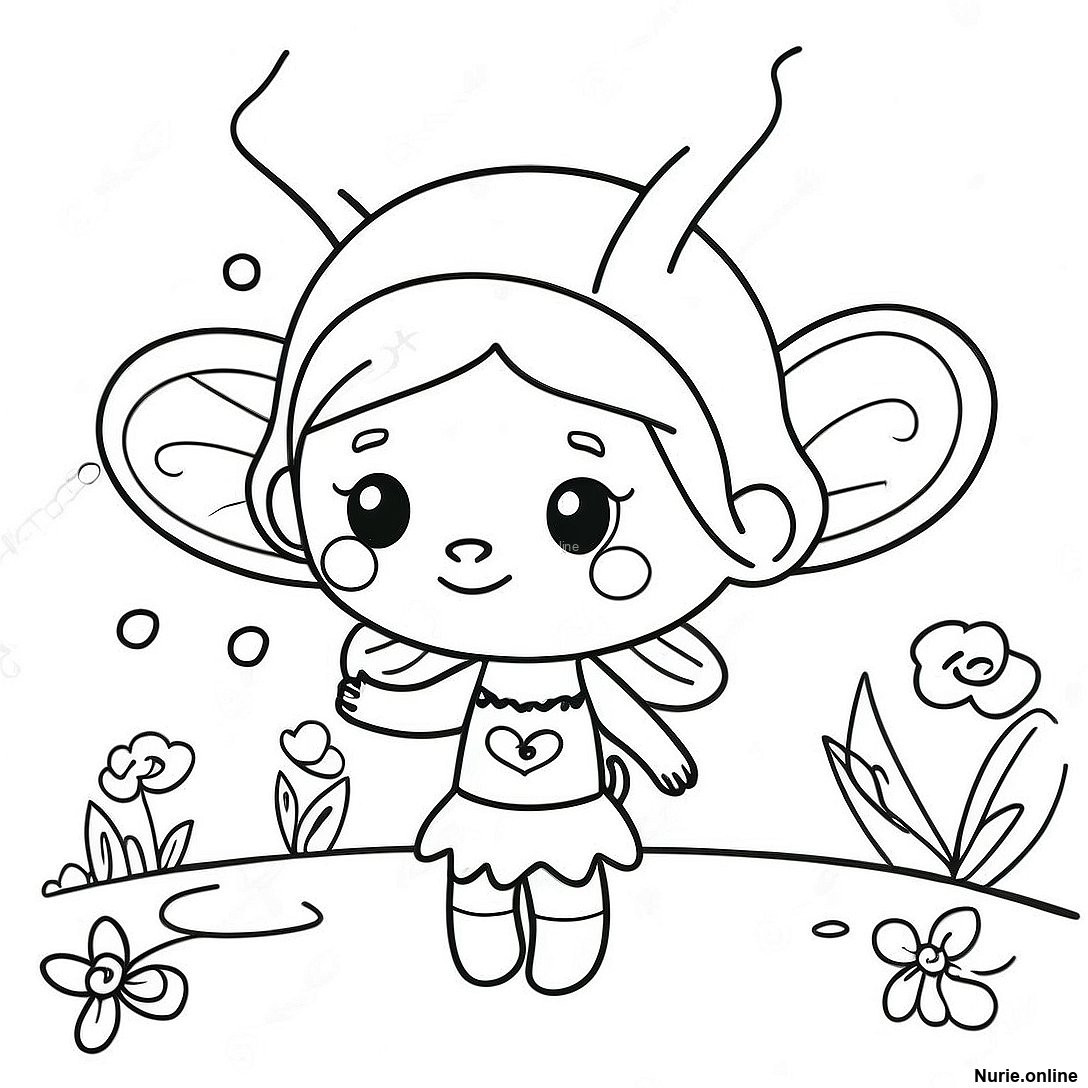 かわいい動物の仲間と一緒の友好的な妖精の塗り絵の印刷可能なPDFをダウンロードする