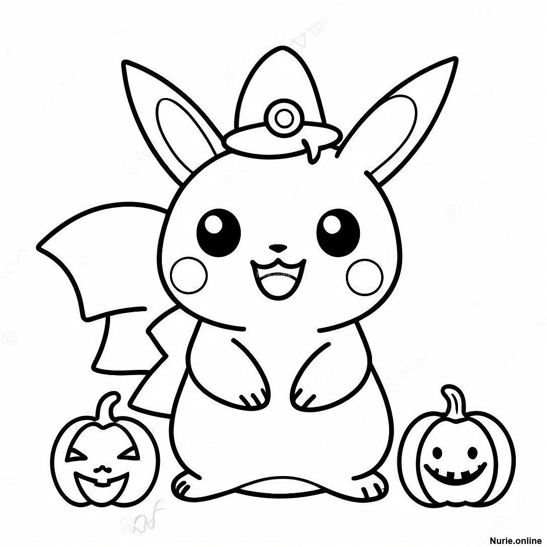 かわいいハロウィンのピカチュウとカボチャの塗り絵の印刷可能なPDFをダウンロードする