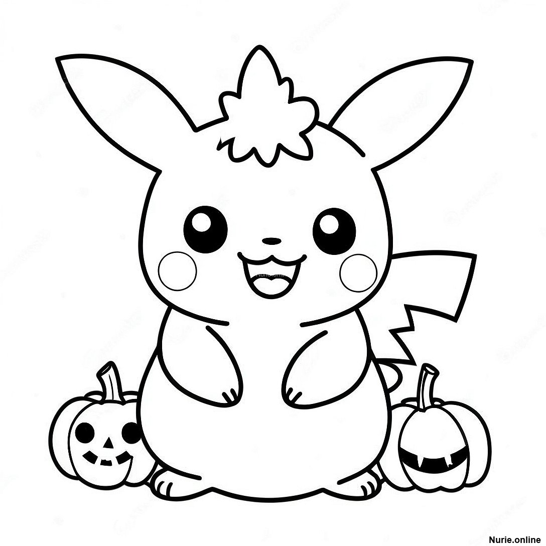 かわいいハロウィンのピカチュウとカボチャの塗り絵の印刷可能なPDFをダウンロードする