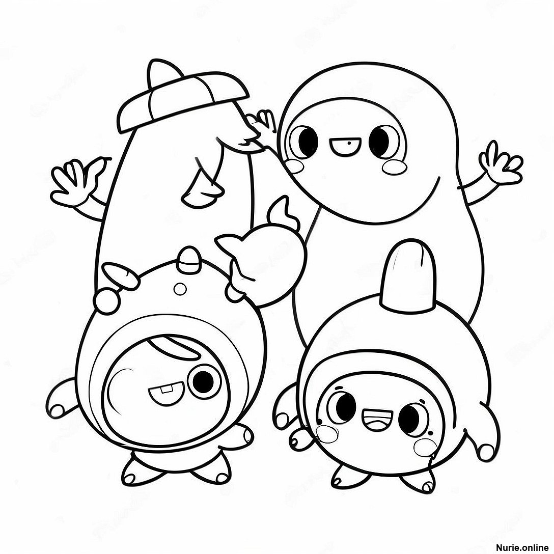 かわいいオッドボッズキャラクターの塗り絵の印刷可能なPDFをダウンロードする