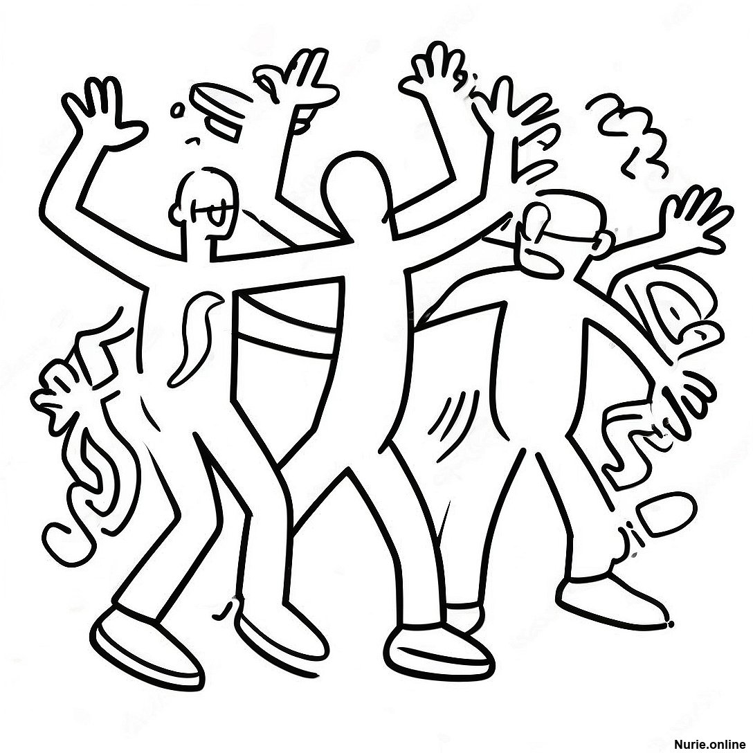 キース・ヘリングのダンスフィギュアの塗り絵の印刷可能なPDFをダウンロードする