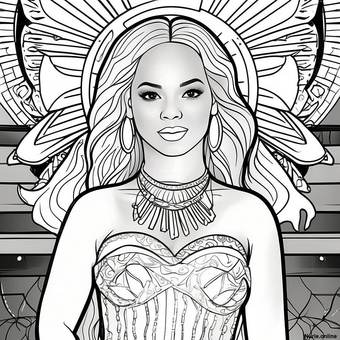 キラキラドレスのビヨンセ 塗り絵の印刷可能なPDFをダウンロードする