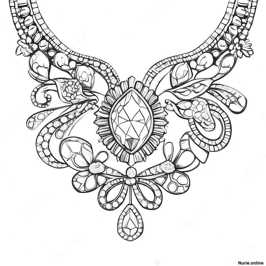 きらめくダイヤモンドネックレス 塗り絵の印刷可能なPDFをダウンロードする
