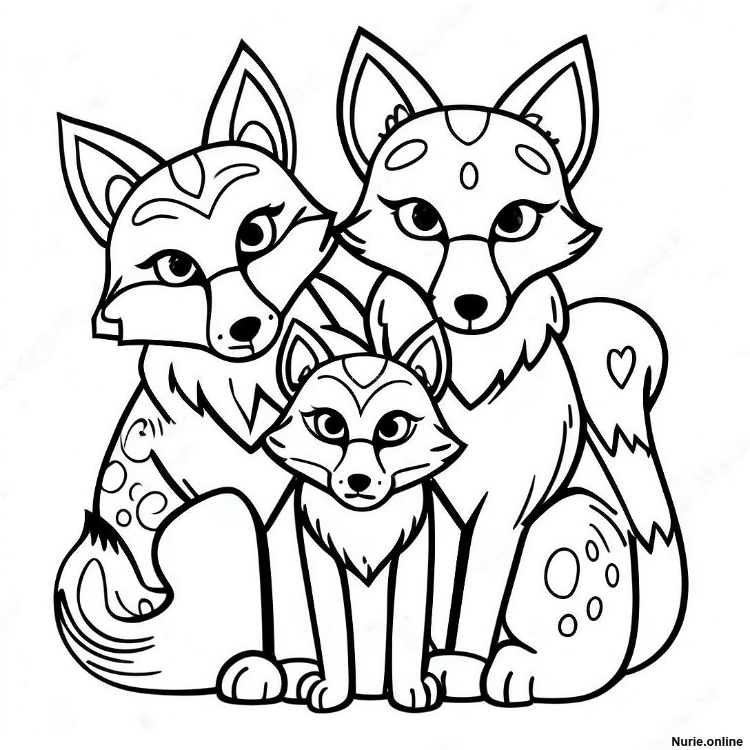 キツネの家族の塗り絵の印刷可能なPDFをダウンロードする