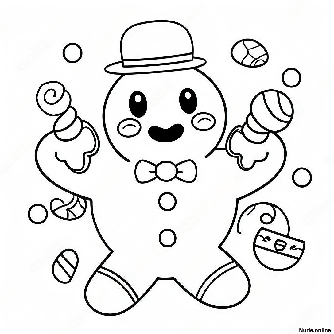 キャンディケインを持った笑顔のジンジャーブレッドマン塗り絵