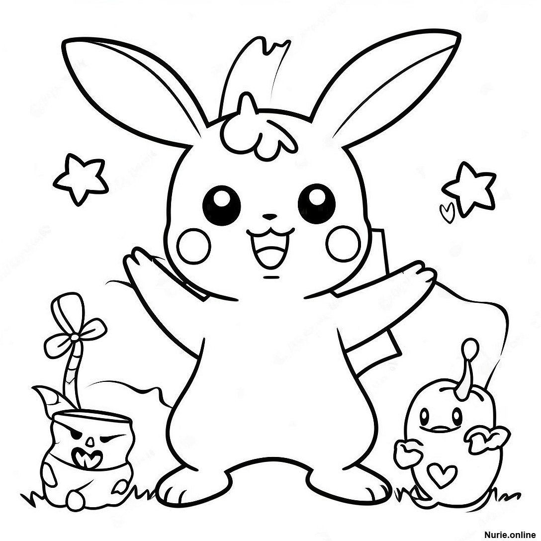 楽しいハロウィンのピカチュウのトリック・オア・トリートの塗り絵の印刷可能なPDFをダウンロードする